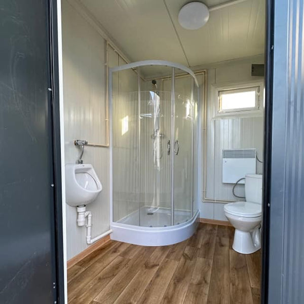 Este módulo sanitario doble es una unidad prefabricada de alto rendimiento, diseñada para cubrir las necesidades de higiene en obras, festivales, campamentos o emergencias donde no hay red de saneamiento. Su construcción robusta con paneles aislantes asegura eficiencia térmica y acústica, mientras que su equipamiento integral permite su uso inmediato tras la instalación.
